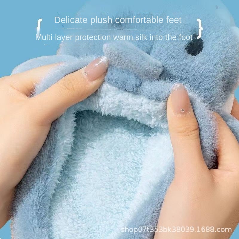 Cotton Slippers for Women Winter Shark Cartoon Cute Fleece Lined Thick Anti-Slip Quiet Indoor Warm Cotton Shoes