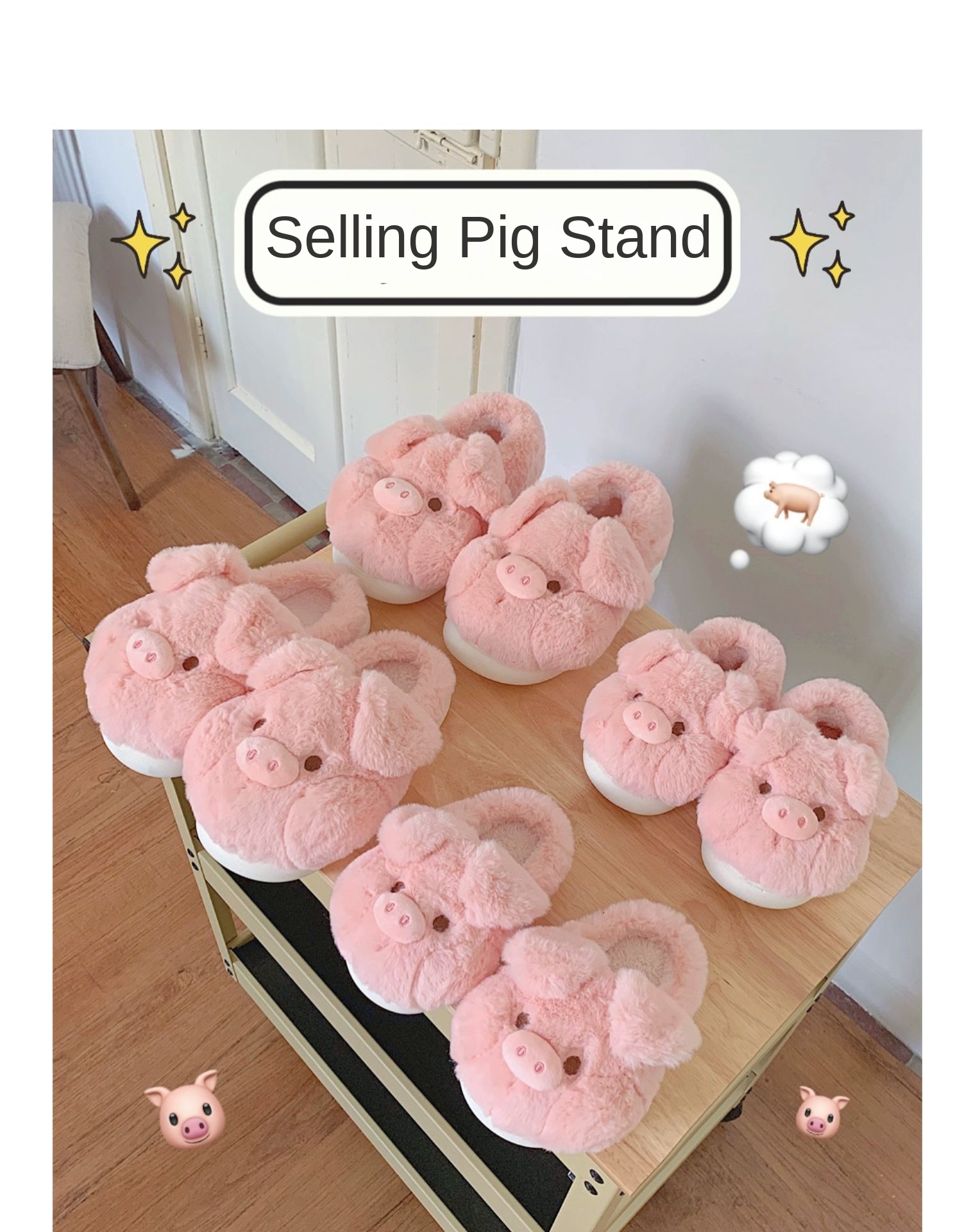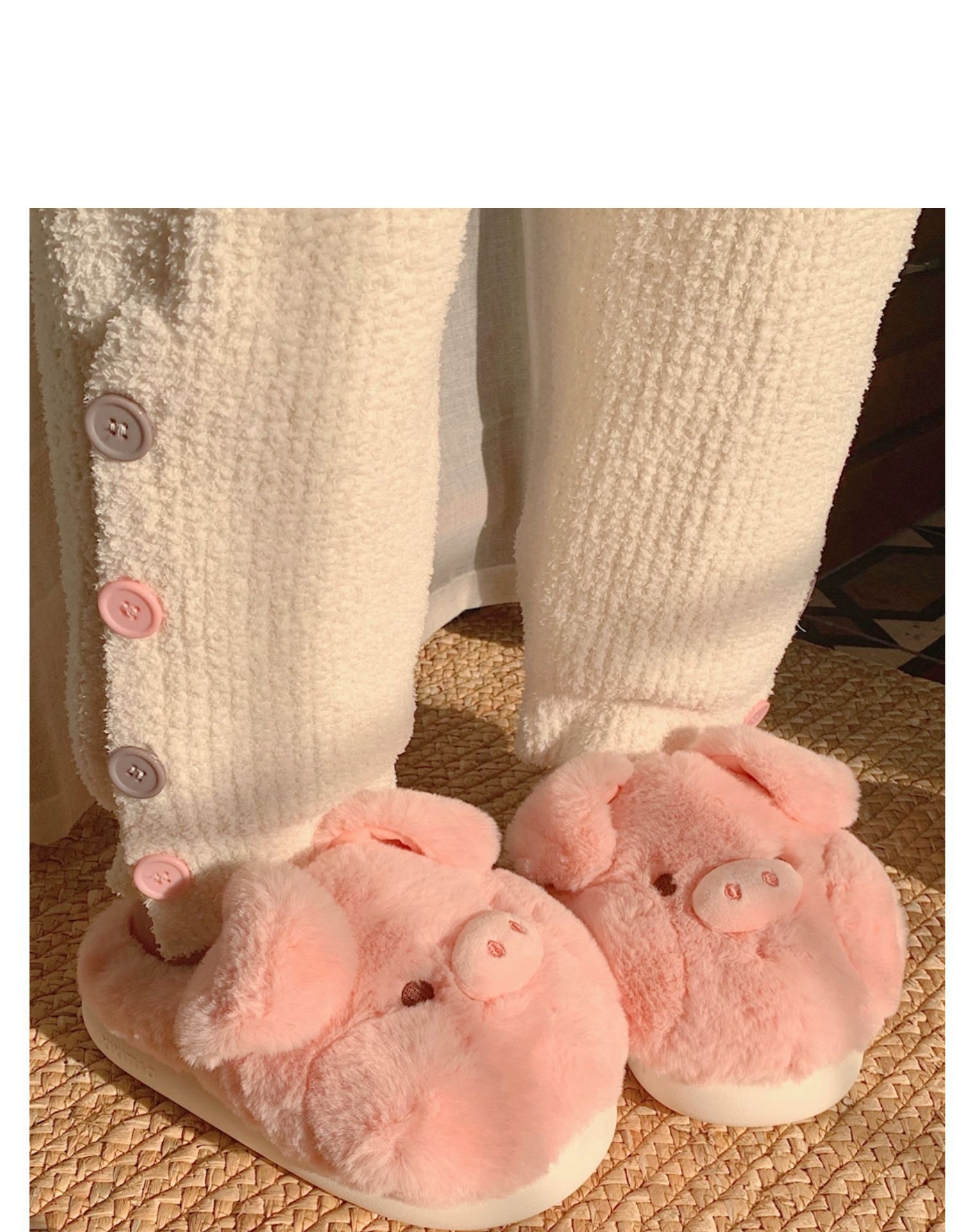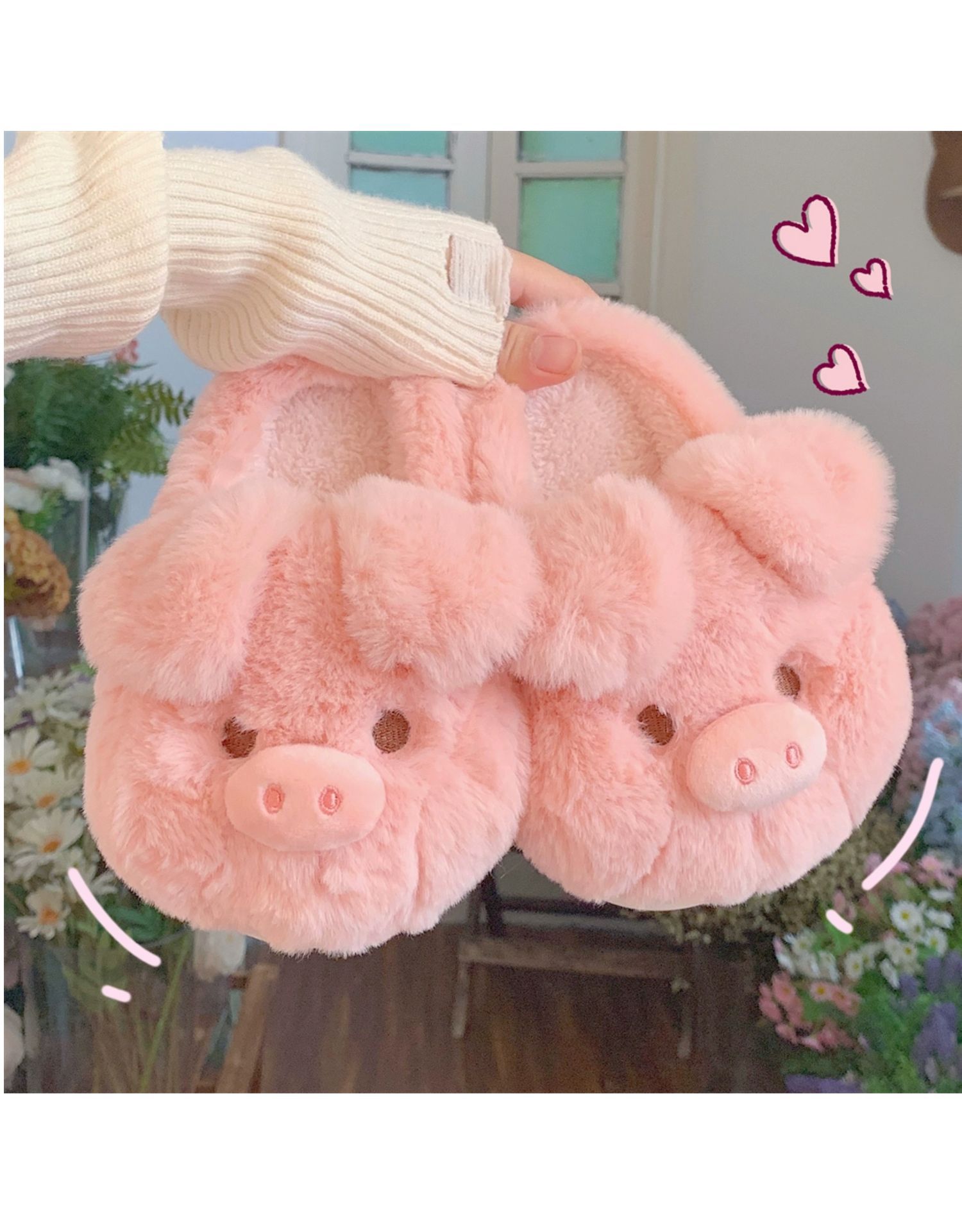 Winter Warm Soft Thick-Sole Furry Slippers for Women, Cute Pink Pig Cotton House Slippers